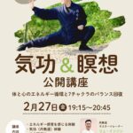 2026年2月24日 / 最終更新日時 : 2026年2月24日 イルチブレインヨガ 豊田スタジオ 【全スタジオ&zoom 】気功&瞑想無料公開講座 体と心のエネルギー循環と7チャクラの バランス回復のトレーニング「気功&瞑想」講座が開催されます! 気功(丹無道)とは! 「体のバランスを整え、心の中心を強化していく」 気功(丹無道)をすると… ■ 体のバランス・姿勢 […]
